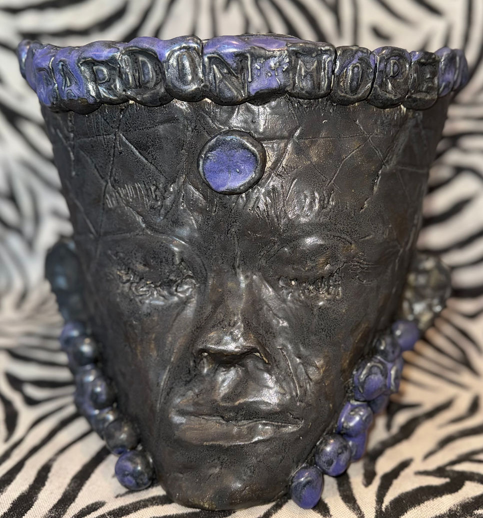Three Surrounding Heads of Ancients on one pot, 9" H, High-Fired, Hand-Built, 2026